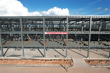 馬來西亞億緯一期項目化成車間主體鋼結(jié)構(gòu)封頂現(xiàn)場 -