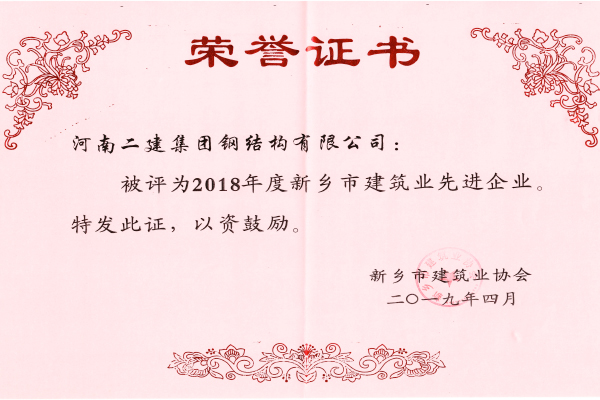 公司榮獲“2018年度新鄉(xiāng)市建筑業(yè)先進(jìn)企業(yè)”